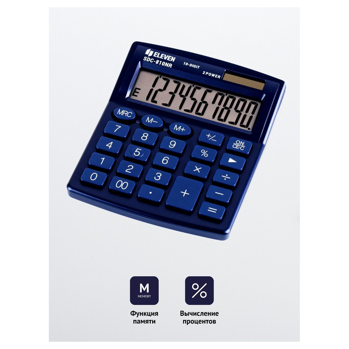 Калькулятор настольный Eleven SDC-810NR-NV, 10 разрядов, двойное питание, 127*105*21мм, темно-синий