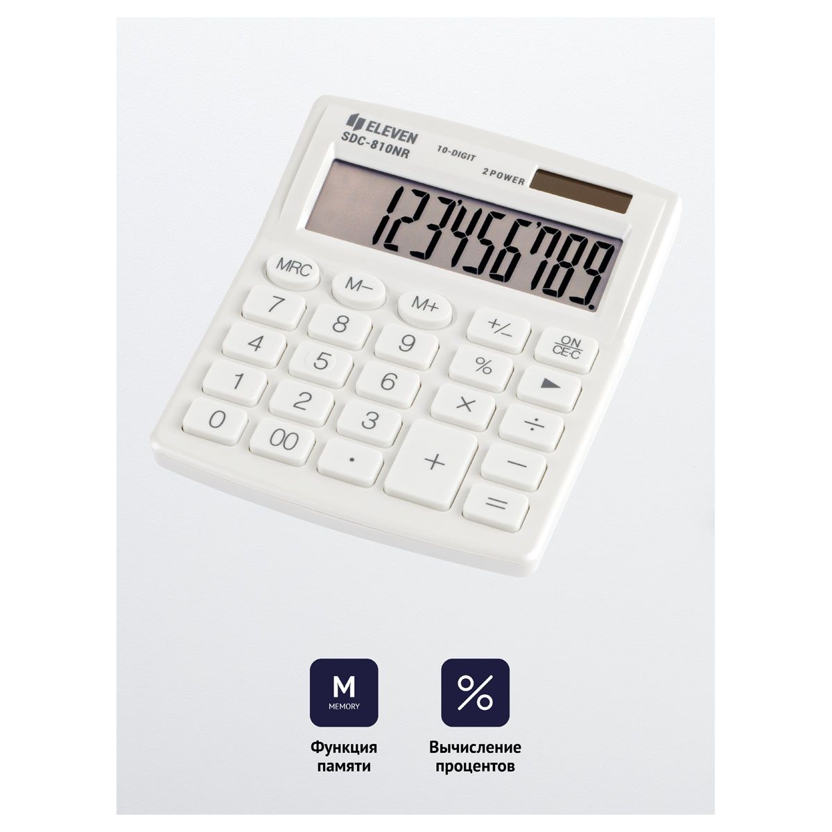 Калькулятор настольный Eleven SDC-810NR-WH, 10 разрядов, двойное питание, 127*105*21мм, белый