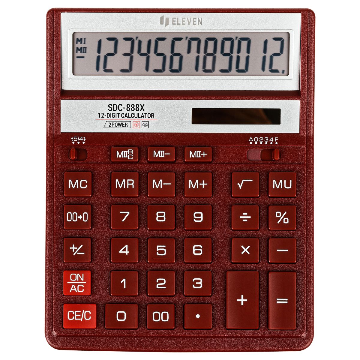 Калькулятор настольный Eleven SDC-888X-RD, 12 разрядов, двойное питание, 158*203*31мм, красный