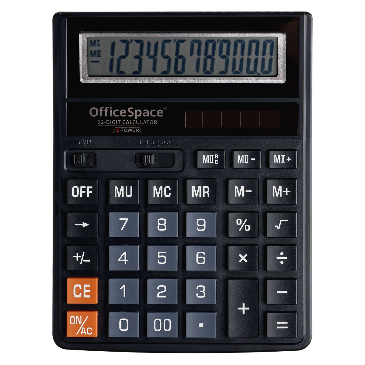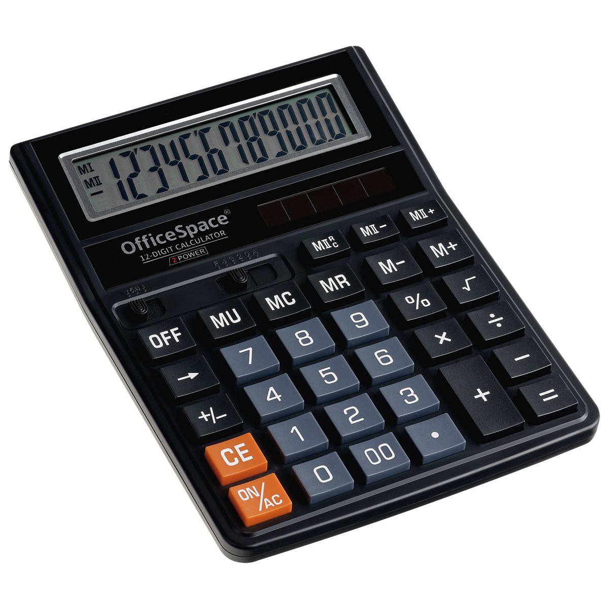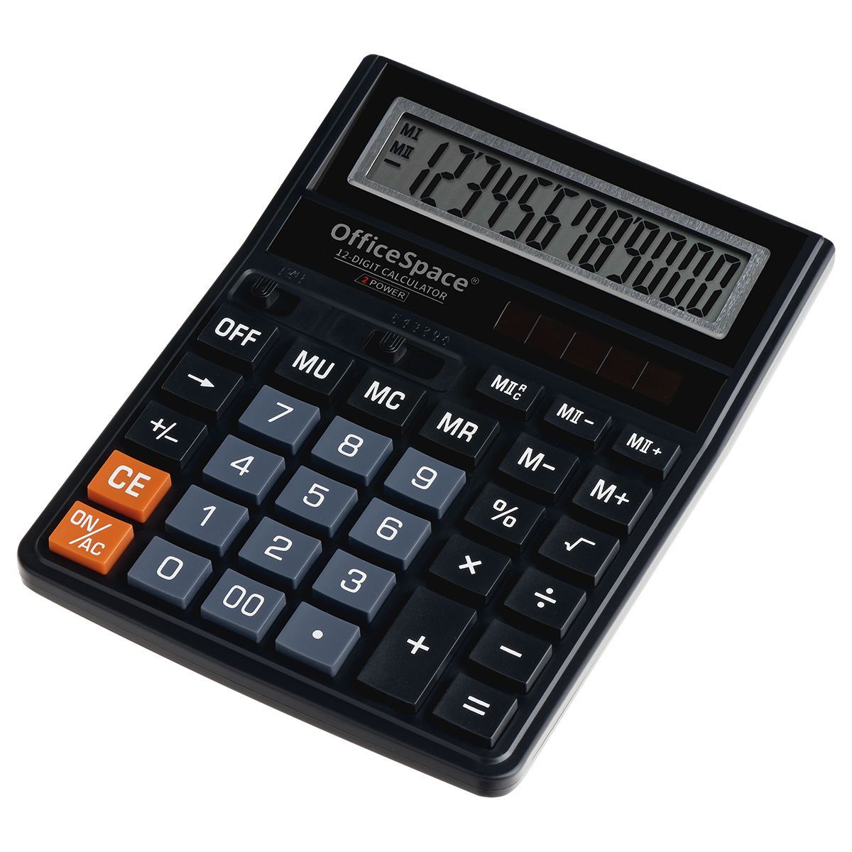 Калькулятор настольный OfficeSpace, 12 разрядов, двойное питание, 143*190*29мм, черный