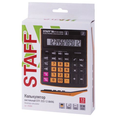 Калькулятор настольный STAFF PLUS STF-333-BKRG (200x154 мм) 12 разрядов, ЧЕРНО-ОРАНЖЕВЫЙ, 250460