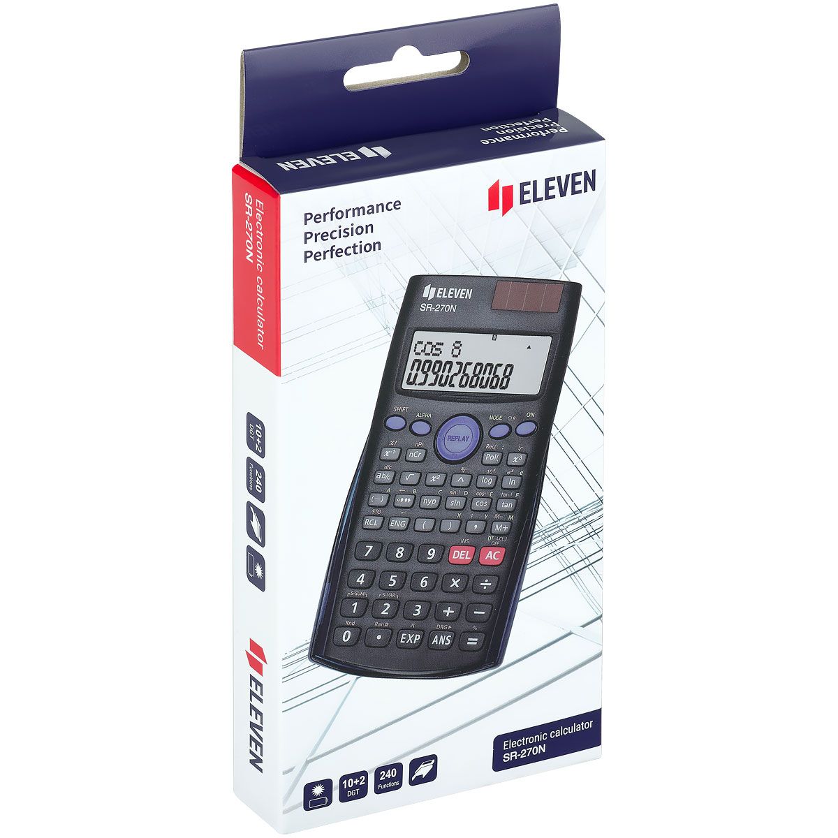 Калькулятор научный Eleven SR-270N, 10+2 разрядов, 240 функций, двойное питание, 82*162*16мм, черный