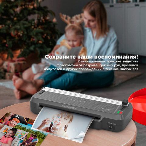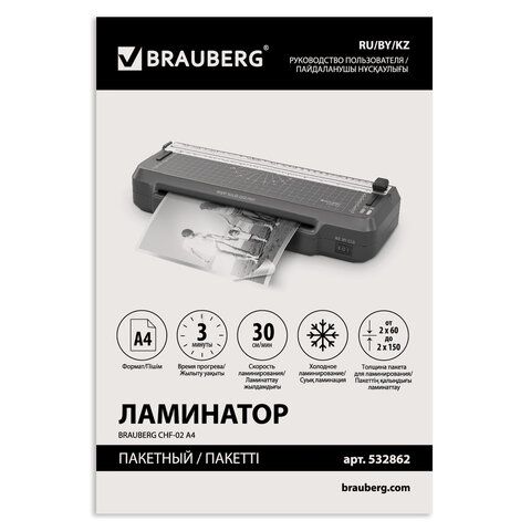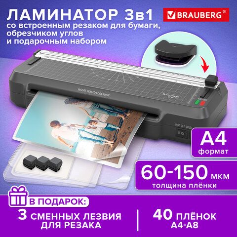 Ламинатор 3 в 1 BRAUBERG CHF-02, А4, 60-150 мкм, 30 см/мин, со встроенным резаком и обрезчиком углов, В ПОДАРОК набор пленок 40 шт., 532862