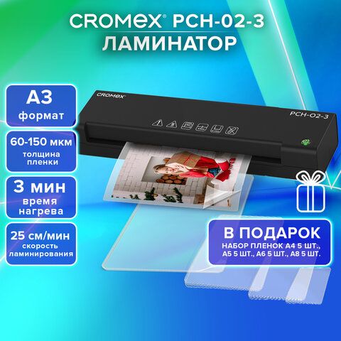 Ламинатор А3, пленки 60-150 мкм, скорость 25 см/мин, 20 пленок В ПОДАРОК!, CROMEX PCH-02-3, 533023