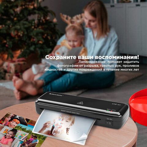 Ламинатор BRAUBERG CHF-01 А4, 60-150 мкм, 25 см/мин, с подарочным набором для ламинирования: резак, обрезчик углов, пленка 52 шт., 532861
