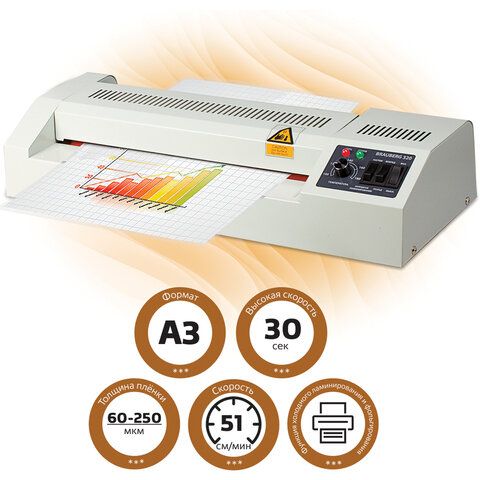 Ламинатор BRAUBERG FGK-320, формат А3, толщина пленки 1 сторона 60-250 мкм, скорость 51 см/мин, 531351