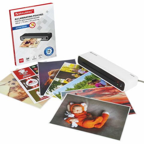 Ламинатор BRAUBERG L460W БЕЛЫЙ, формат A4, толщина пленки 75-125 мкм, скорость 30 см/мин, 532269