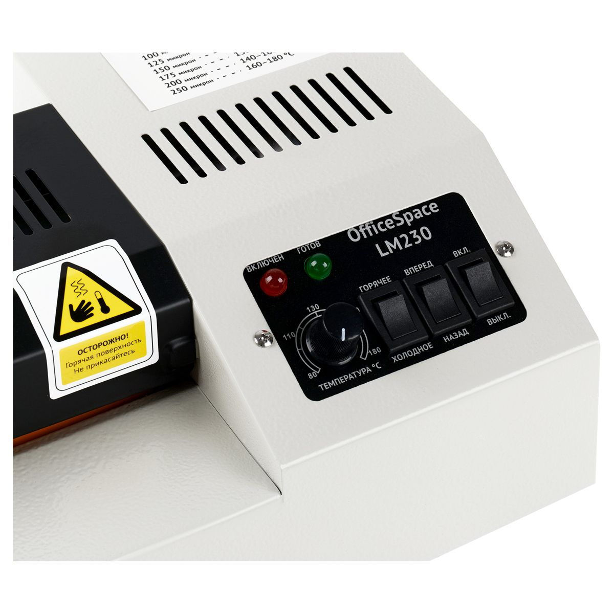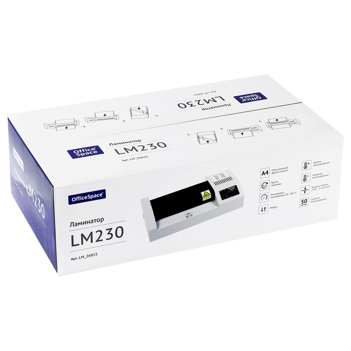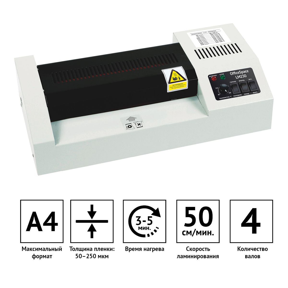 Ламинатор OfficeSpace LM230, А4, 50-250мкм, 4 вала, скорость 50см/мин, метал. корпус