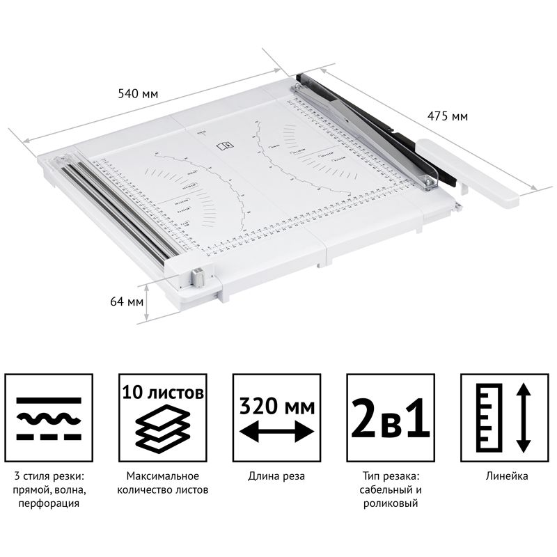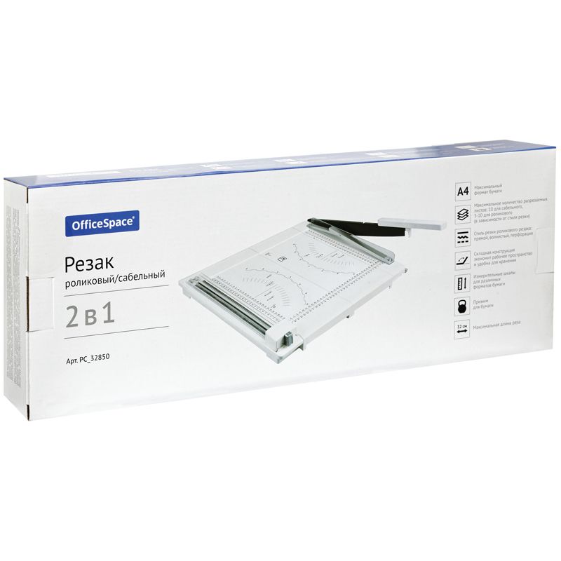 Резак сабельный/роликовый А4 OfficeSpace, 320мм, 2в1, до 10 листов, 3 стиля резки