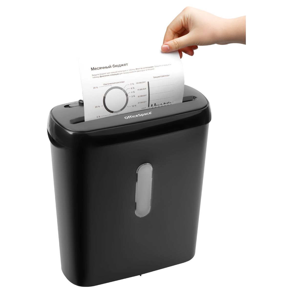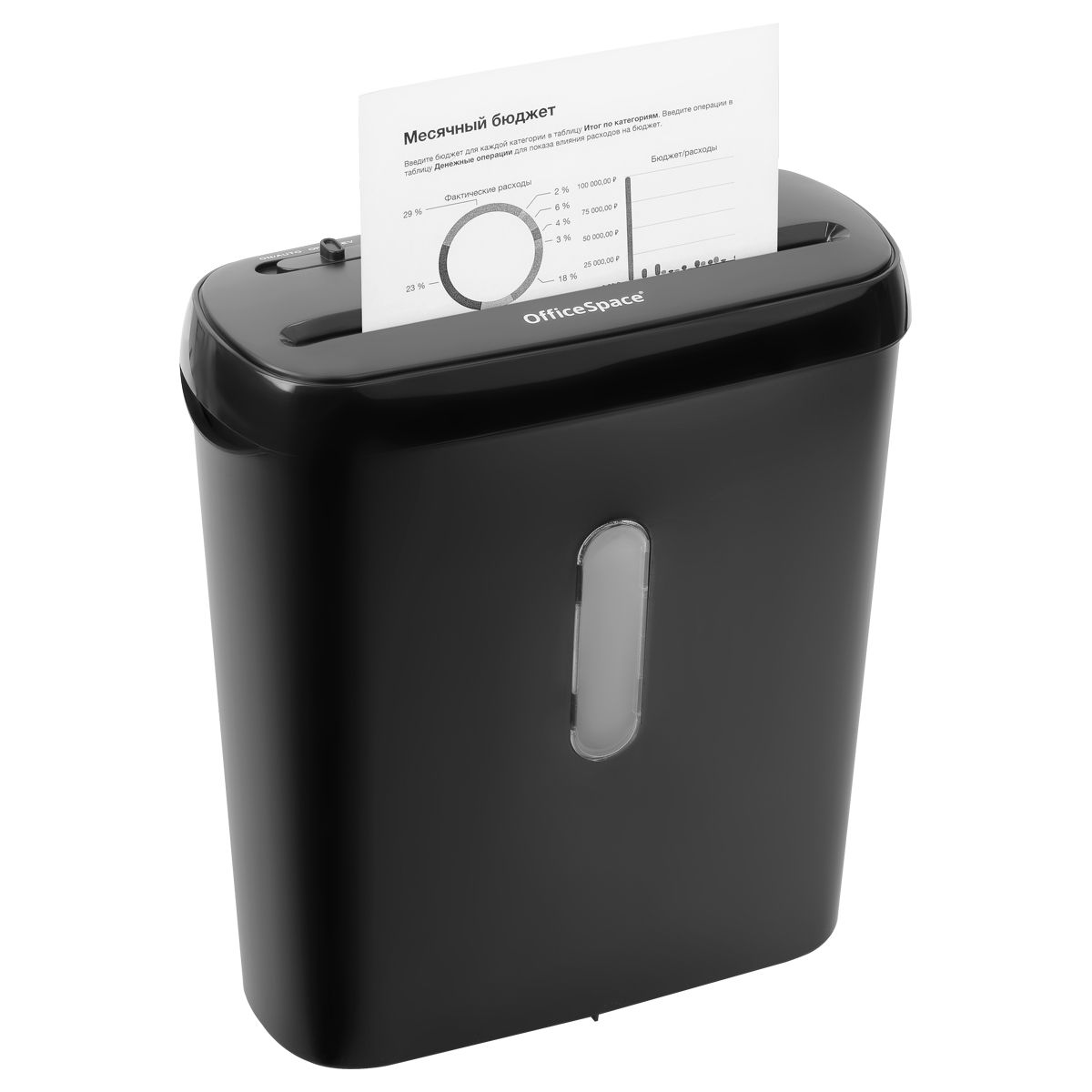 Уничтожитель документов OfficeSpace DS68, 2 ур. секр., 6 листов, полосы 6мм., 8л.