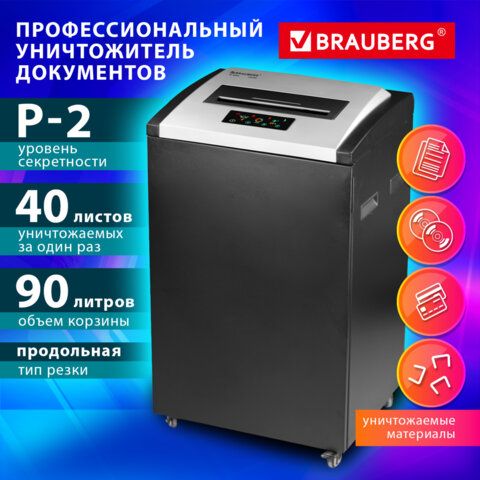 Уничтожитель (шредер) BRAUBERG PROFESSIONAL PS-4090s, "HeavyDuty", A3, 2 уровень секретности, 4 мм, 40 листов, корзина 90 литров, 532596