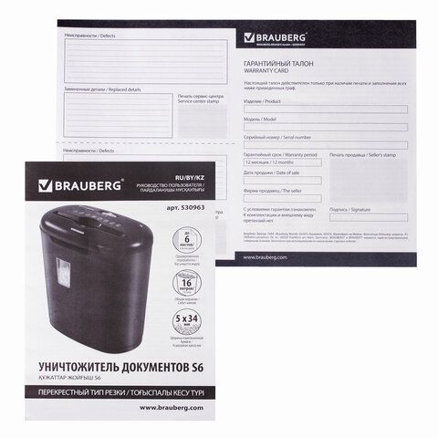 Уничтожитель (шредер) BRAUBERG S6, 3 уровень секретности, фрагменты 5х34 мм, 6 листов, 16 л, 530963