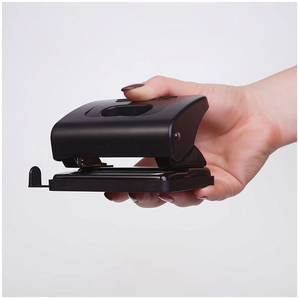 Дырокол упрощает работу с документами, создавая отверстия для подшивки. Он экономит время и поддерживает порядок, особенно в офисе, где требуется обработка от 10 до 300 листов.