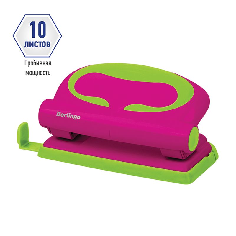 Дырокол Berlingo "Fuze" 10л., пластиковый, розовый, с линейкой