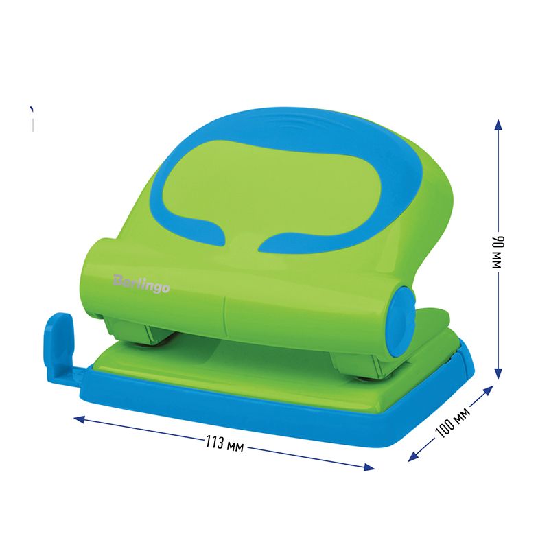 Дырокол Berlingo "Fuze" 20л., пластиковый, зеленый, с линейкой