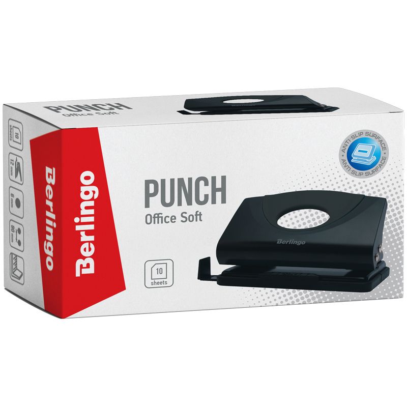 Дырокол Berlingo "Office Soft" 10л., пластиковый, черный, с линейкой