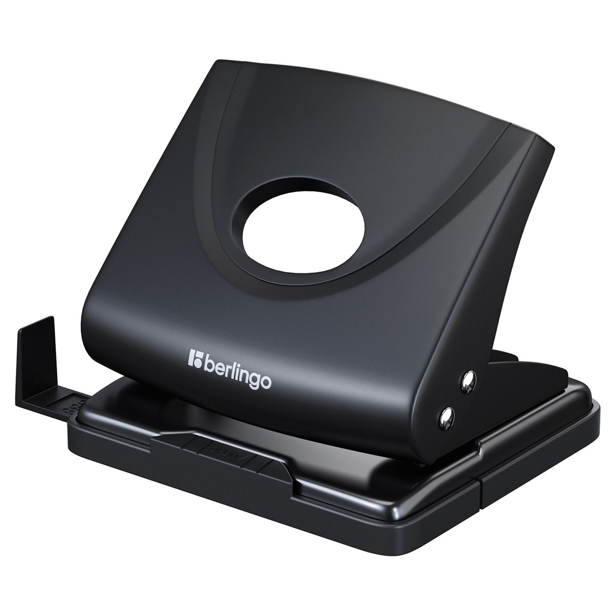 Дырокол Berlingo "Office Soft" 20л., пластиковый, черный, с линейкой