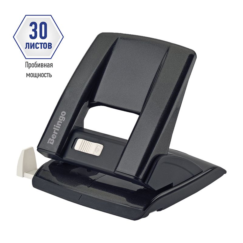 Дырокол Berlingo "Power TX" 30л., металлический, с фиксатором и линейкой, черный