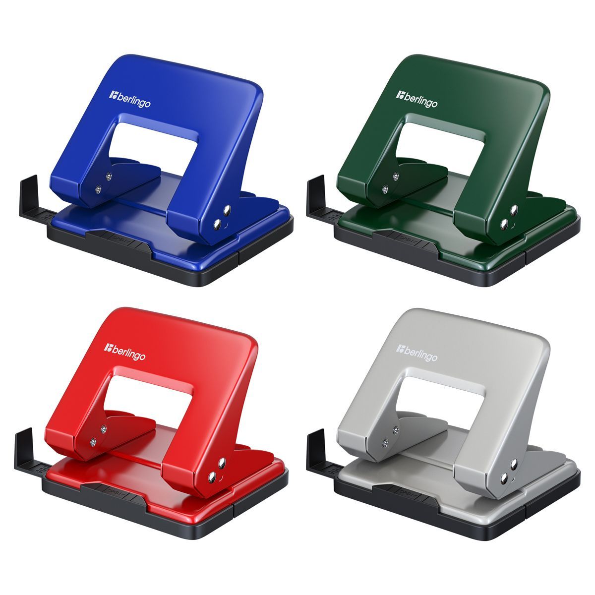 Дырокол Berlingo "Universal" 20л., металлический, ассорти, с линейкой
