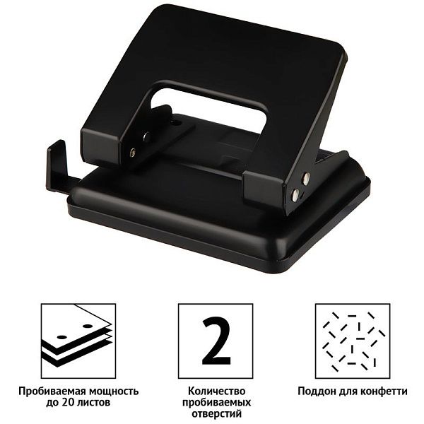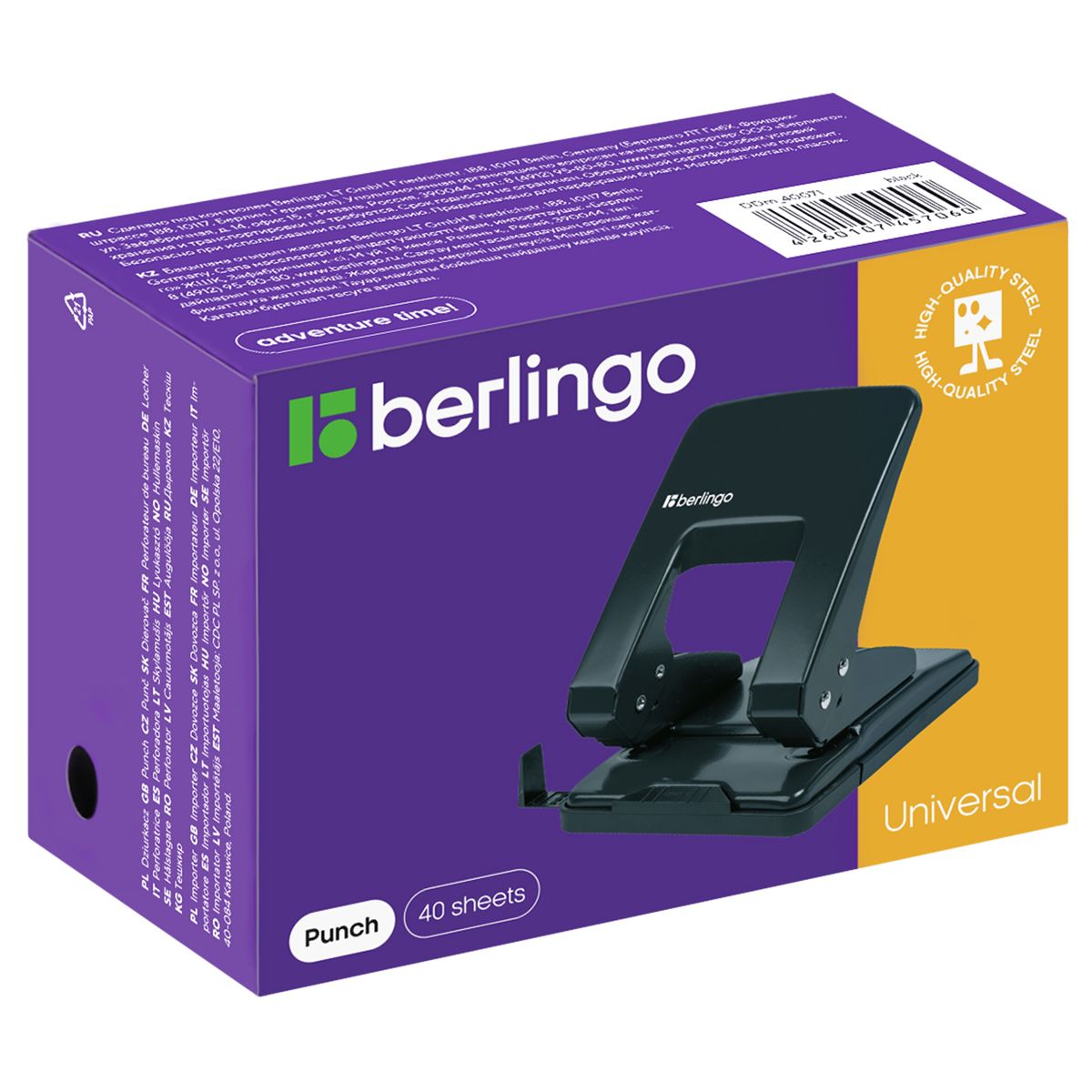 Дырокол Berlingo "Universal" 40л., металлический, черный, с линейкой
