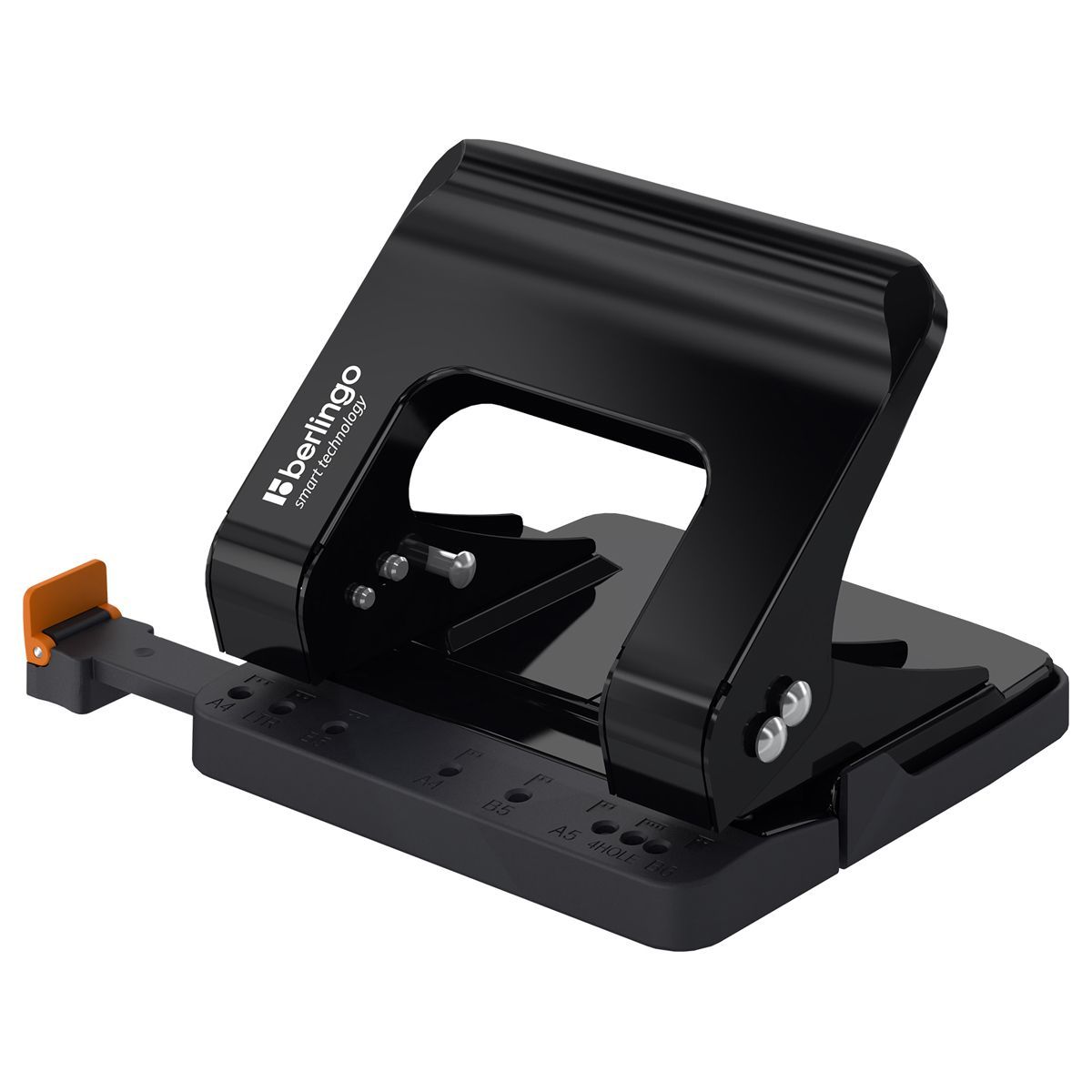 Дырокол энергосберегающий Berlingo "Smart Technology" 25л., металлический, фиксатор, линейка, черный