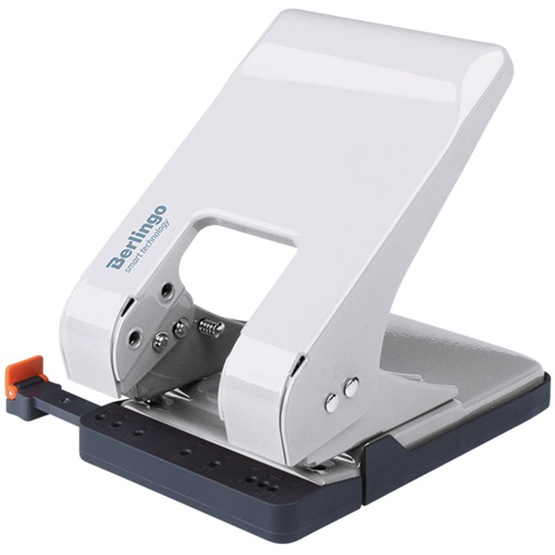 Дырокол Энергосберегающий Berlingo "Smart Technology" 45л., металлический, с фиксатором, белый, с линейкой