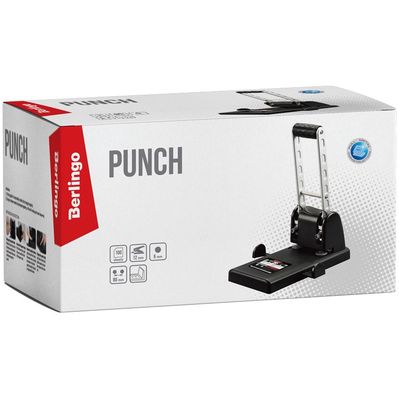 Дырокол мощный Berlingo "Heavy Duty" 100л., черный, с линейкой