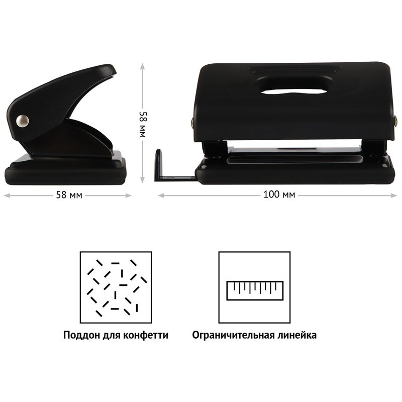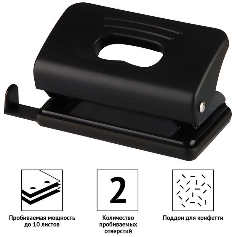 Дырокол OfficeSpace 10л., пластиковый, черный, с линейкой