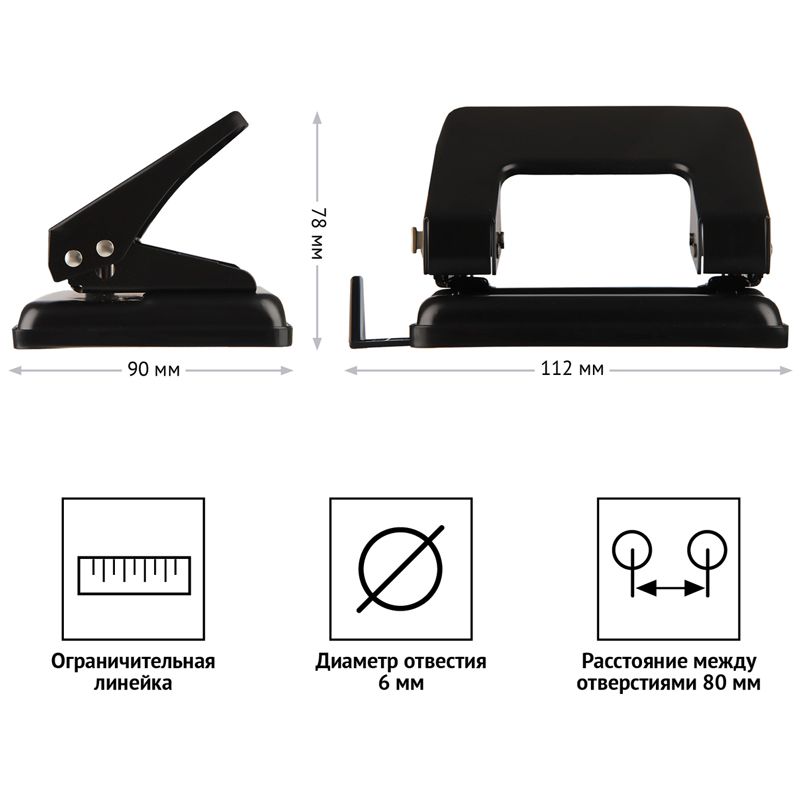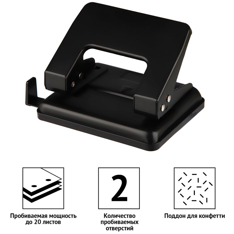 Дырокол OfficeSpace 20л., металлический, черный, с линейкой