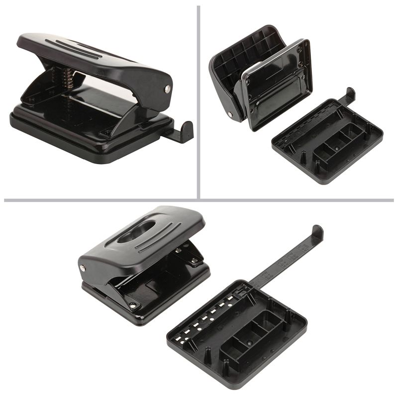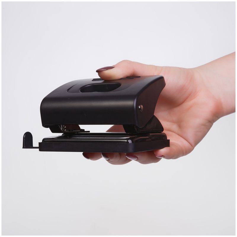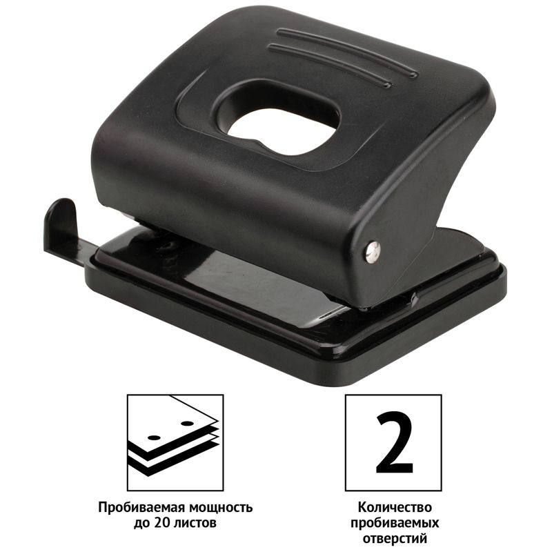 Дырокол OfficeSpace 20л., пластиковый, черный, с линейкой