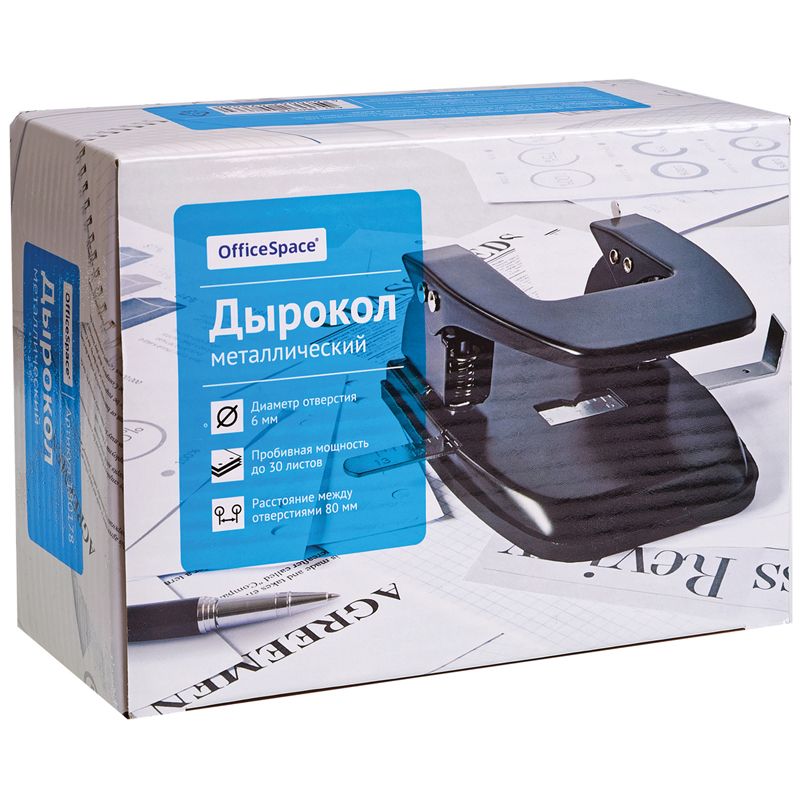 Дырокол OfficeSpace 30л., металлический, черный, с линейкой