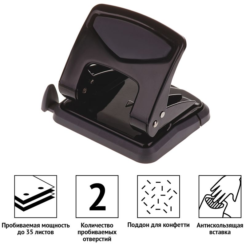 Дырокол OfficeSpace 35л., металлический, черный, с линейкой