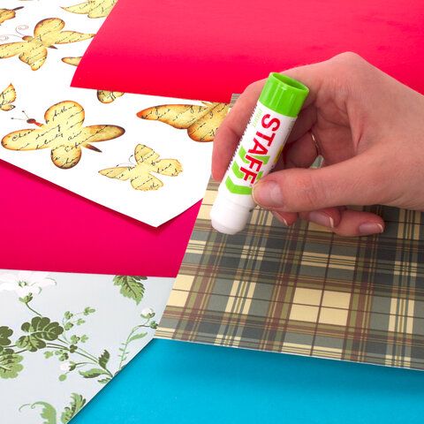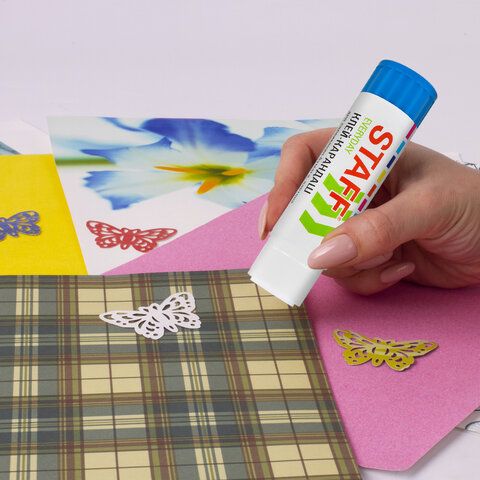Клей-карандаш оптимален для школьных поделок, офисных задач и скрапбукинга, но не подходит для дерева, пластика или металла.