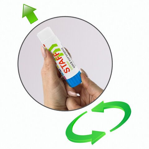 Это твёрдый клей на основе ПВА или синтетических полимеров, помещённый в пластиковый корпус с вращающимся механизмом. Он наносится равномерно, не растекается и быстро сохнет, обеспечивая аккуратное склеивание. Используется преимущественно для бумаги, картона, фотографий и лёгких тканей.