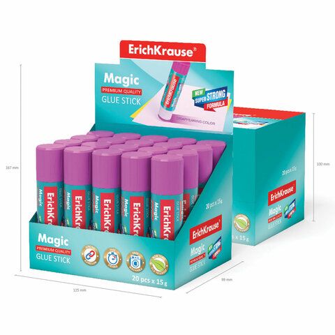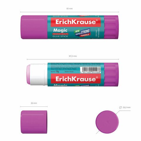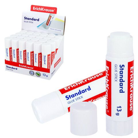 Для школы и офиса чаще выбирают ПВА-based клей-карандаш объёмом 8–15 г, например, от Erich Krause или Attache. Для творчества подойдут цветные или полимерные составы.