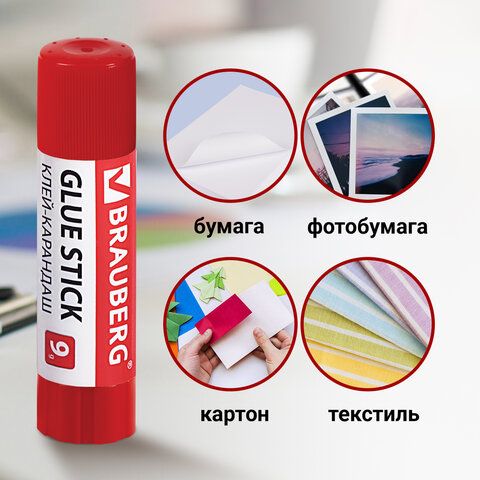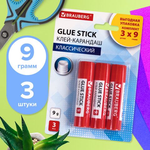 Клей-карандаш 9 г ВЫГОДНАЯ УПАКОВКА BRAUBERG, 3 штуки на блистере, 271305