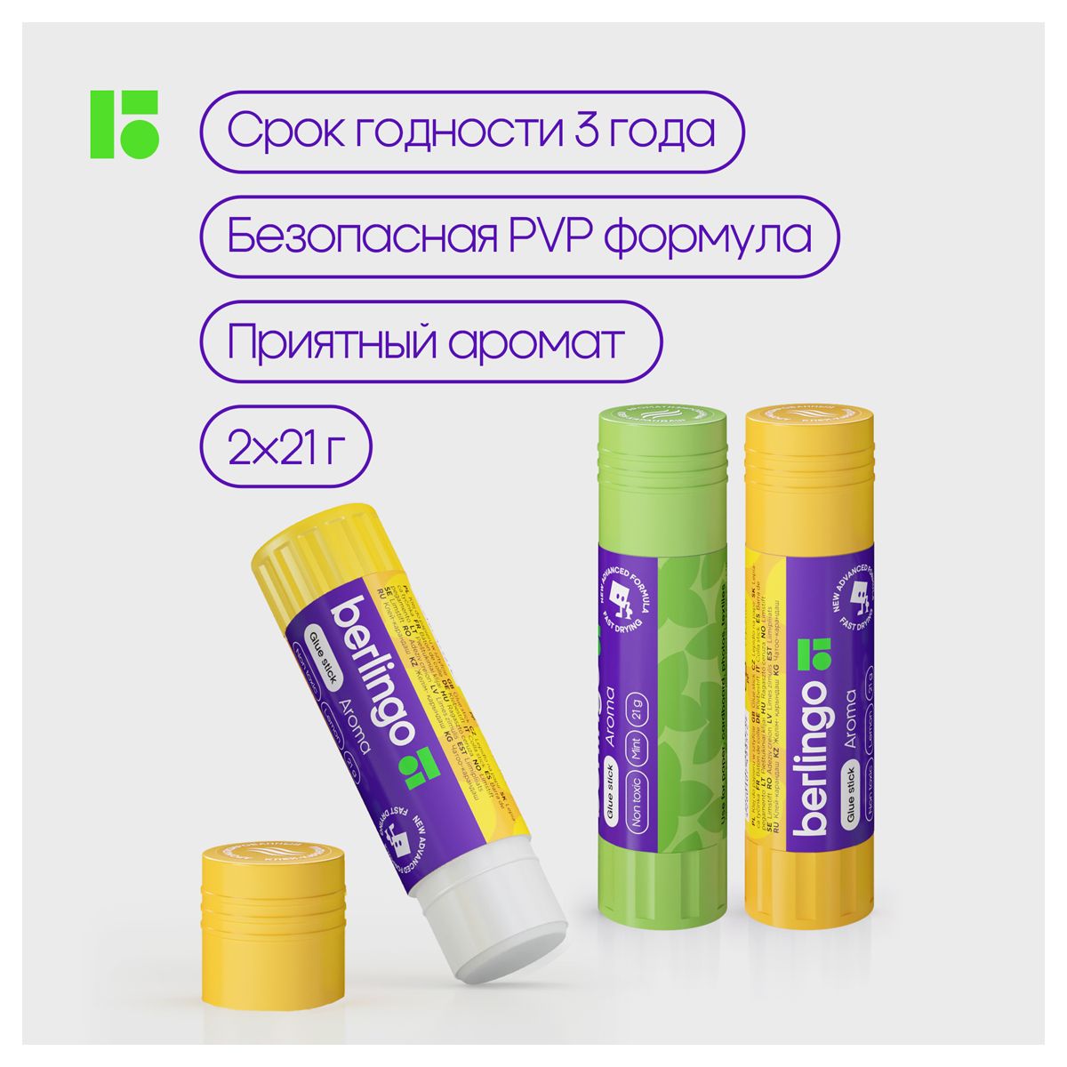 Клей-карандаш Berlingo "Aroma", 21г, ароматизированный (мята, лимон), 2шт., блистер, ПВП