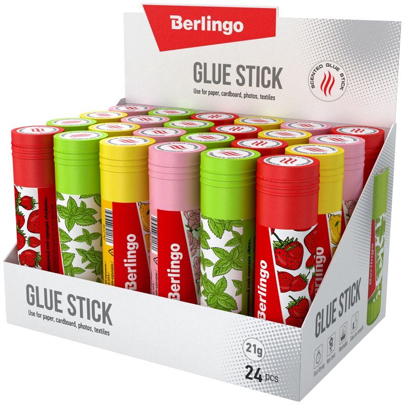 Клей-карандаш Berlingo "Aroma", 21г, ароматизированный (мята, лимон, клубника, роза), ПВП