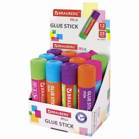 Клей-карандаш BRAUBERG MIX, 25 г, PVP основа, 229073