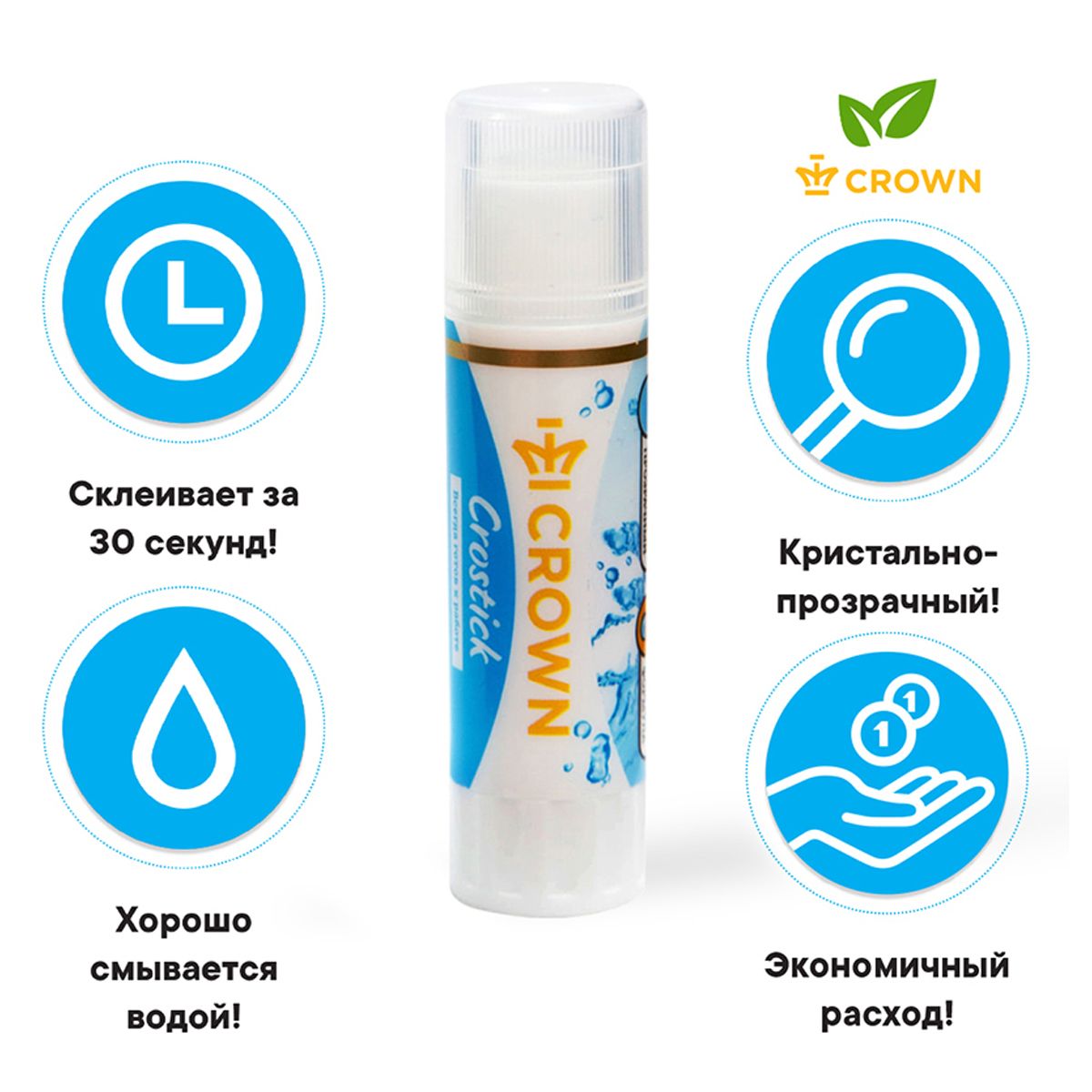 Клей-карандаш Crown "Crystal", 15г, кристально-чистый, ПВП