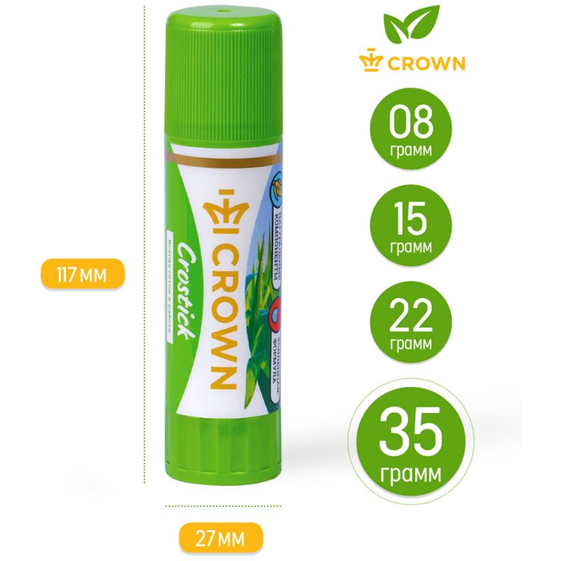 Клей не имеет запаха, абсолютно безвредный, нетоксичный и легко отстирывается в холодной воде. Экспериментируй и создавай шедевры с клеем Crown.