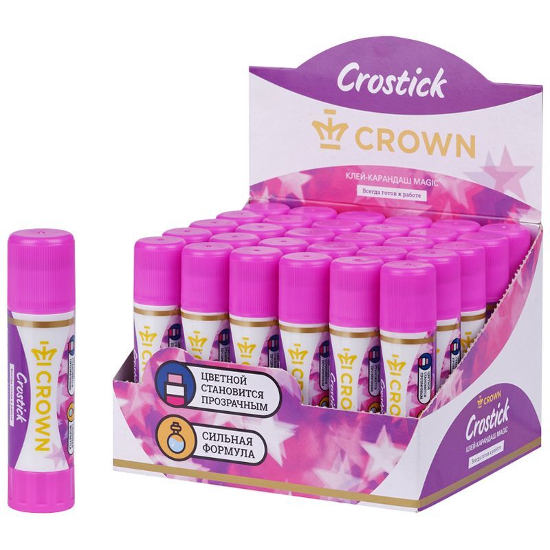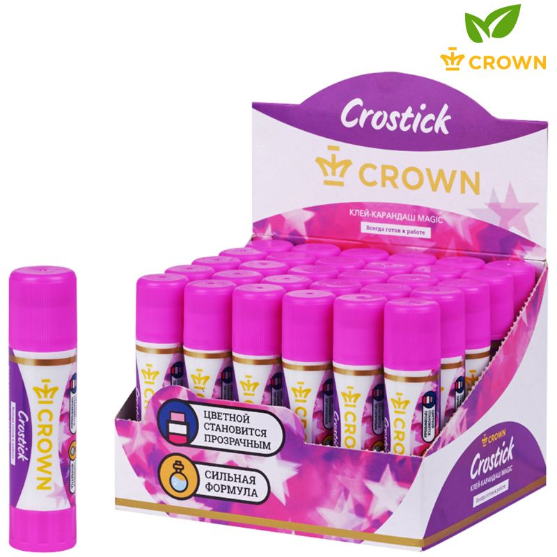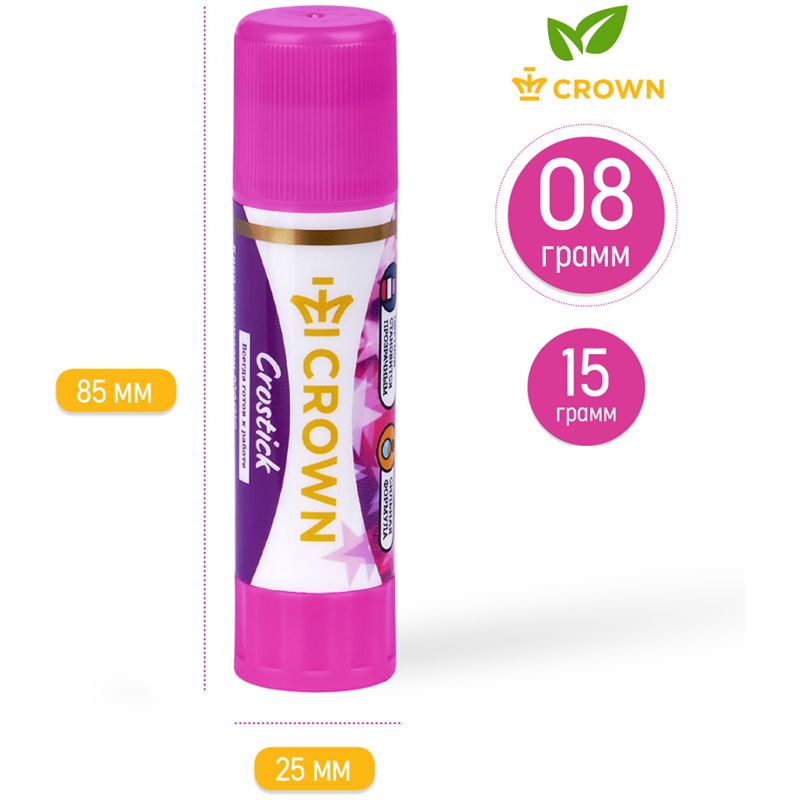 Клей-карандаш Crown "Indicator", 08г, с цветным индикатором, ПВП