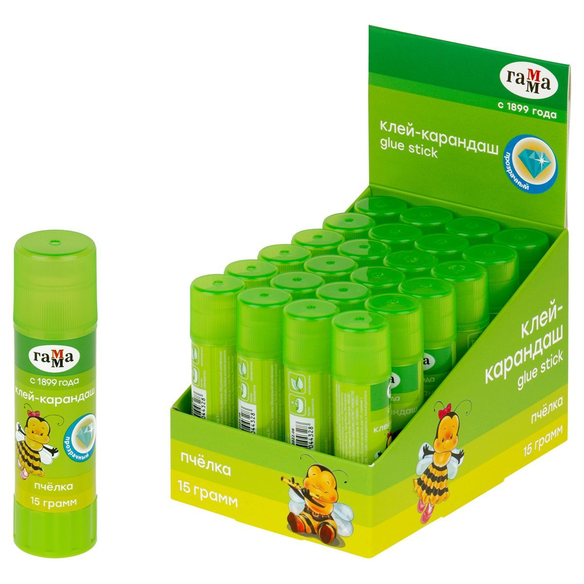 Клей-карандаш Гамма "Пчелка", 15г, прозрачный, ПВП