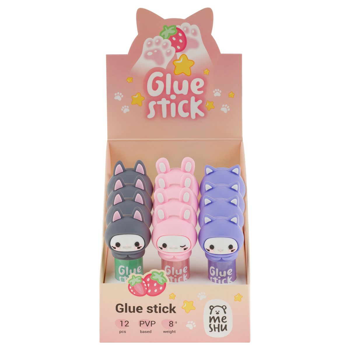 Клей-карандаш MESHU с топпером "Cuties", 8г, дисплей бокс, ПВП, ассорти