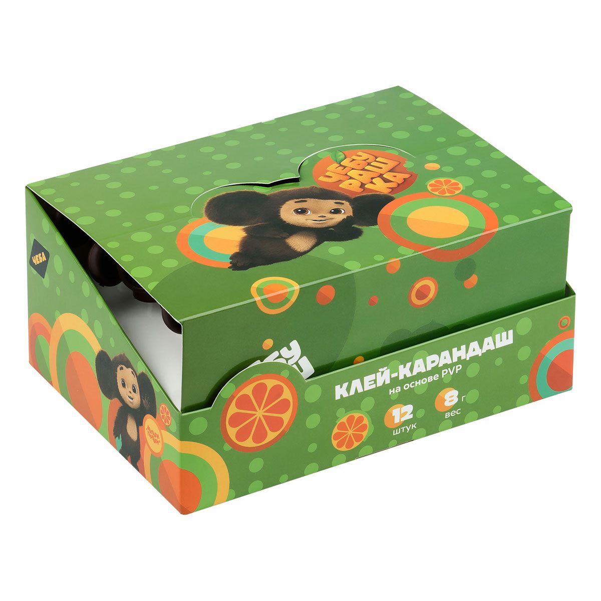Клей-карандаш Мульти-Пульти с топпером "Чебурашка", 08г, ПВП, дисплей бокс