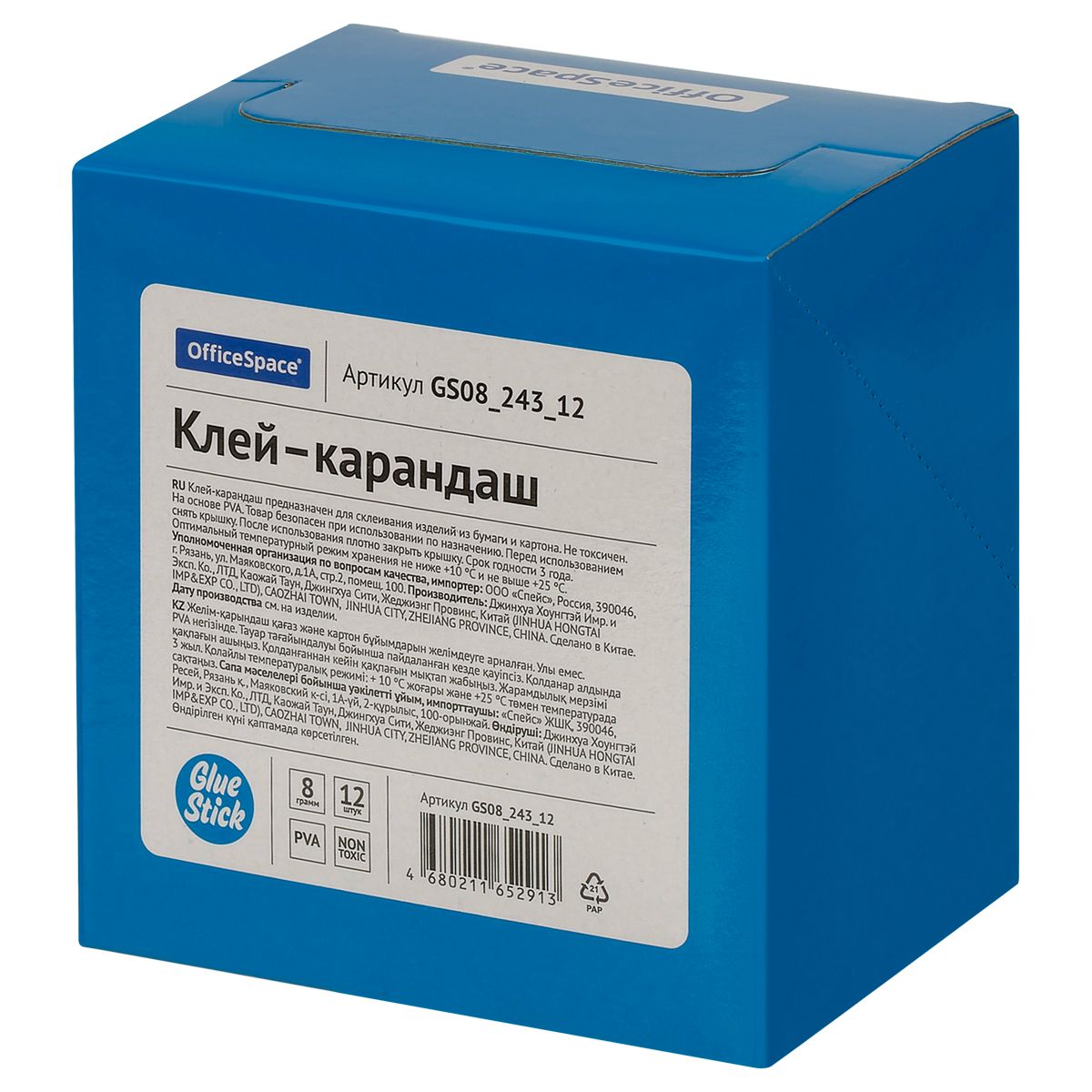 Клей-карандаш OfficeSpace, 08г, дисплей, ПВА_1