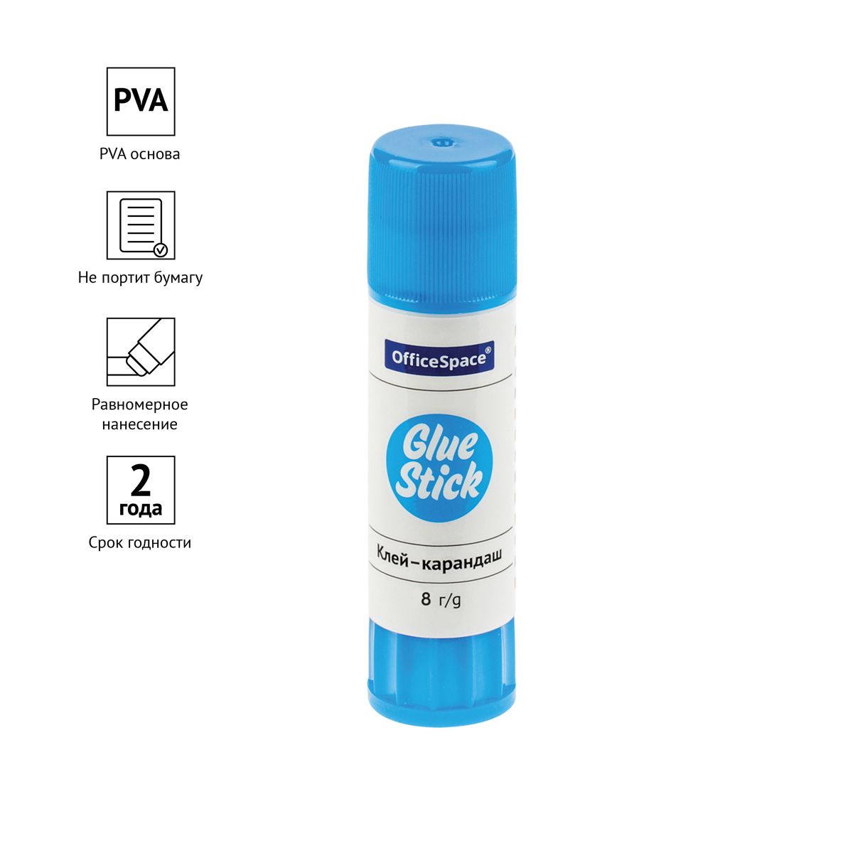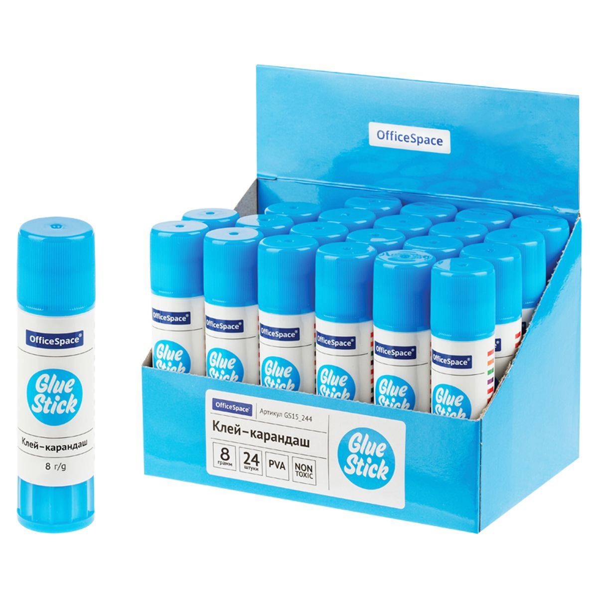 Клей-карандаш OfficeSpace, 08г, дисплей, ПВА