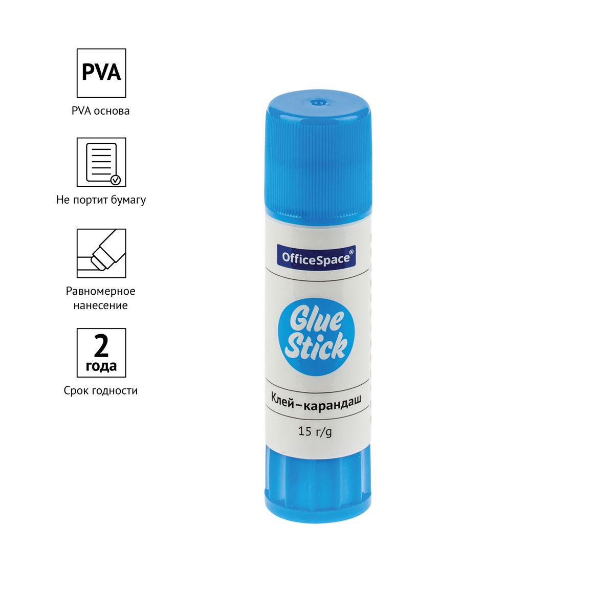 Клей-карандаш OfficeSpace, 15г, дисплей, ПВА