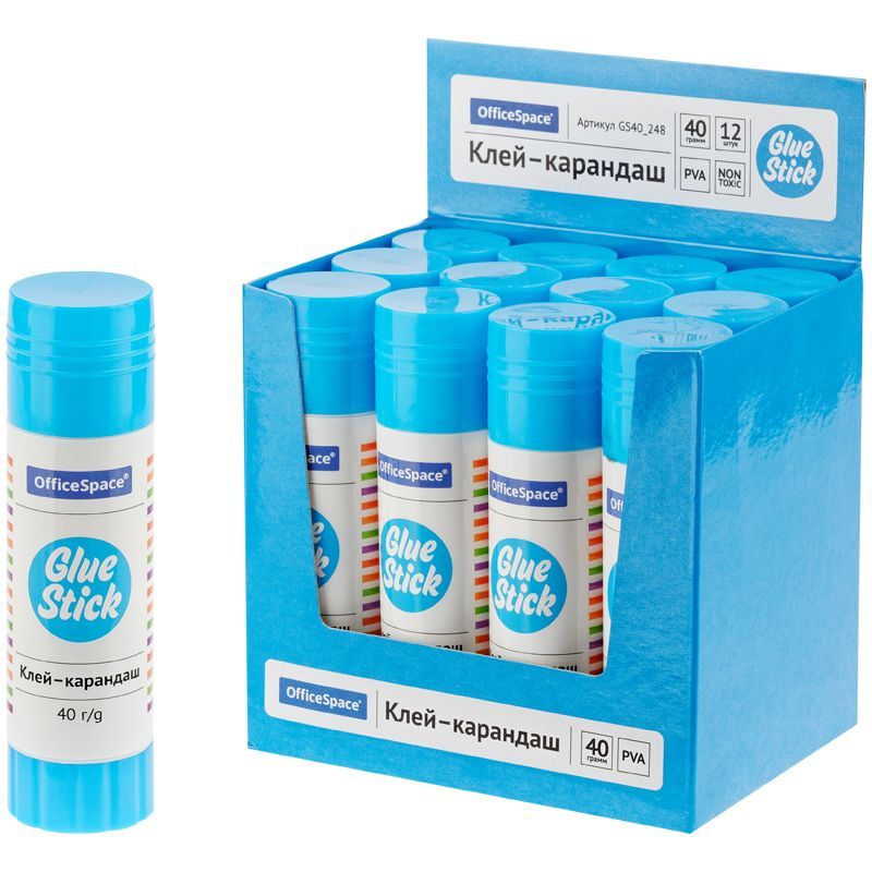 Клей-карандаш OfficeSpace, 40г, дисплей, ПВА