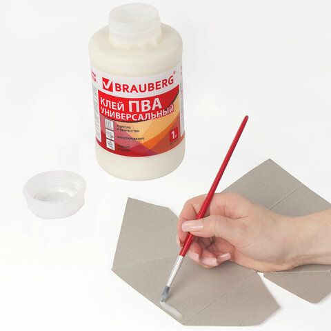 Клей ПВА BRAUBERG, 1 кг, универсальный (бумага, картон, дерево), 600983